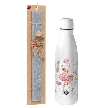 Μπαλαρίνα, Πασχαλινή Λαμπάδα με μεταλλικό παγούρι θερμός ανοξείδωτο (500ml) & κερί αρωματικό πλακέ (30cm) (ΓΚΡΙ)