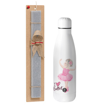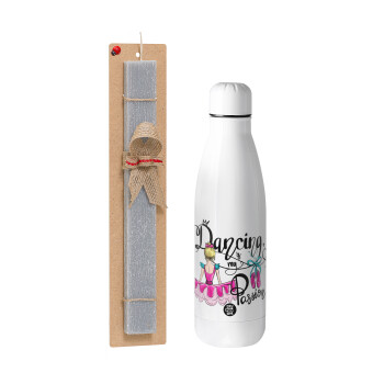 Ballerina in Paris, Πασχαλινή Λαμπάδα με μεταλλικό παγούρι θερμός ανοξείδωτο (500ml) & κερί αρωματικό πλακέ (30cm) (ΓΚΡΙ)