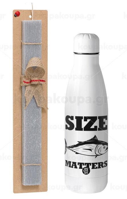 Size matters, Πασχαλινή Λαμπάδα με μεταλλικό παγούρι θερμός ανοξείδωτο (500ml) & κερί αρωματικό πλακέ (30cm) (ΓΚΡΙ)