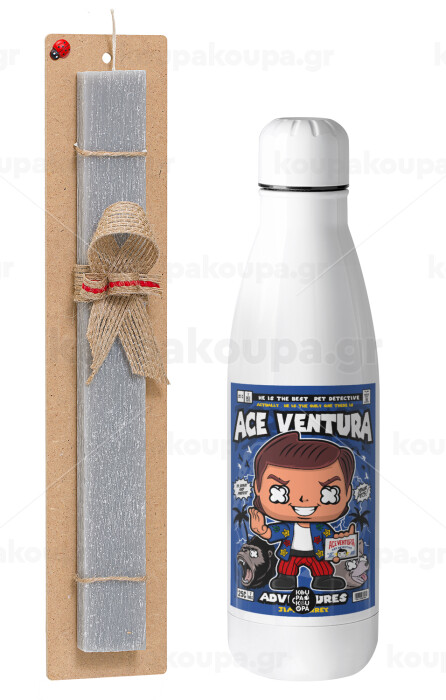 Ace Ventura: Pet Detective, Πασχαλινή Λαμπάδα με μεταλλικό παγούρι θερμός ανοξείδωτο (500ml) & κερί αρωματικό πλακέ (30cm) (ΓΚΡΙ)
