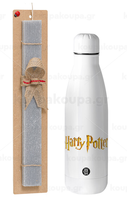 Harry potter movie, Πασχαλινή Λαμπάδα με μεταλλικό παγούρι θερμός ανοξείδωτο (500ml) & κερί αρωματικό πλακέ (30cm) (ΓΚΡΙ)