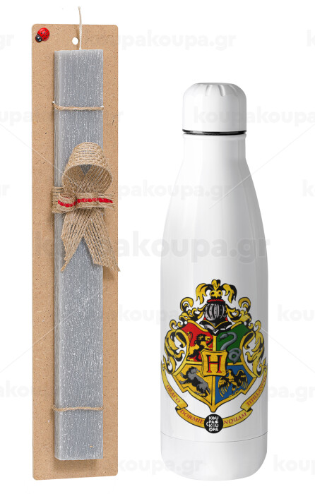 Hogwart's, Πασχαλινή Λαμπάδα με μεταλλικό παγούρι θερμός ανοξείδωτο (500ml) & κερί αρωματικό πλακέ (30cm) (ΓΚΡΙ)