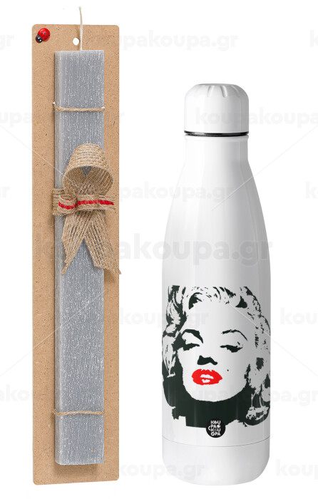 Merilin, Πασχαλινή Λαμπάδα με μεταλλικό παγούρι θερμός ανοξείδωτο (500ml) & κερί αρωματικό πλακέ (30cm) (ΓΚΡΙ)