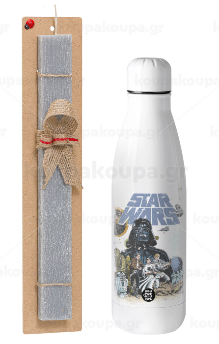 Star Wars, Πασχαλινή Λαμπάδα με μεταλλικό παγούρι θερμός ανοξείδωτο (500ml) & κερί αρωματικό πλακέ (30cm) (ΓΚΡΙ)