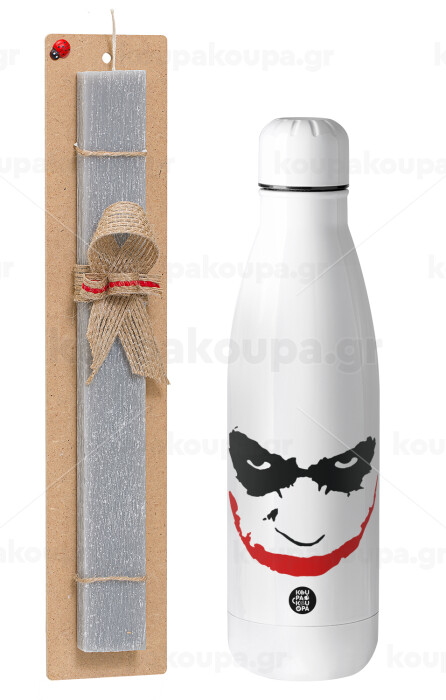 The joker smile, Πασχαλινή Λαμπάδα με μεταλλικό παγούρι θερμός ανοξείδωτο (500ml) & κερί αρωματικό πλακέ (30cm) (ΓΚΡΙ)