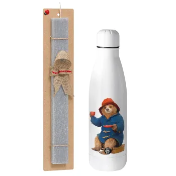 Αρκουδάκι Πάντινγκτον, Πασχαλινή Λαμπάδα με μεταλλικό παγούρι θερμός ανοξείδωτο (500ml) & κερί αρωματικό πλακέ (30cm) (ΓΚΡΙ)