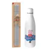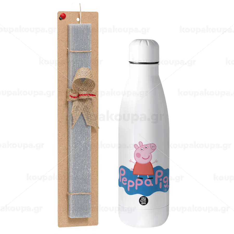 Πέππα το γουρουνάκι μπλε με όνομα, Πασχαλινή Λαμπάδα με μεταλλικό παγούρι θερμός ανοξείδωτο (500ml) & κερί αρωματικό πλακέ (30cm) (ΓΚΡΙ)