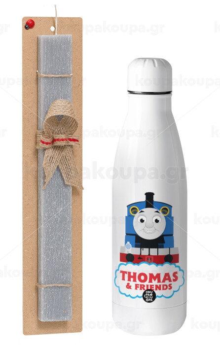 Τόμας το τρενάκι, Πασχαλινή Λαμπάδα με μεταλλικό παγούρι θερμός ανοξείδωτο (500ml) & κερί αρωματικό πλακέ (30cm) (ΓΚΡΙ)