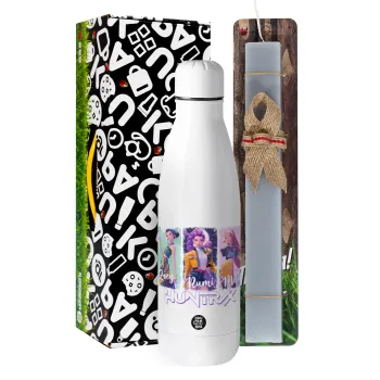 HUNTR/X K-pop girl group, Πασχαλινή Λαμπάδα με μεταλλικό παγούρι θερμός ανοξείδωτο (500ml) & κερί αρωματικό πλακέ (30cm) (ΓΚΡΙ)