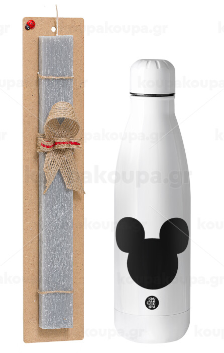 mouse man, Πασχαλινή Λαμπάδα με μεταλλικό παγούρι θερμός ανοξείδωτο (500ml) & κερί αρωματικό πλακέ (30cm) (ΓΚΡΙ)