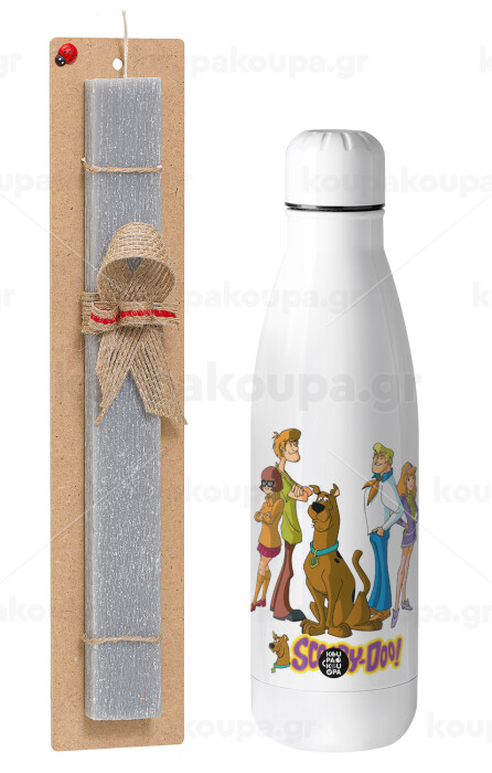 Scooby Doo Characters, Πασχαλινή Λαμπάδα με μεταλλικό παγούρι θερμός ανοξείδωτο (500ml) & κερί αρωματικό πλακέ (30cm) (ΓΚΡΙ)