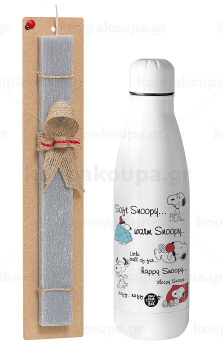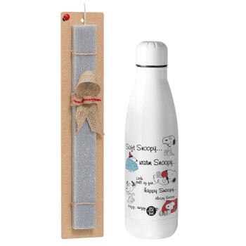 Snoopy manual, Πασχαλινή Λαμπάδα με μεταλλικό παγούρι θερμός ανοξείδωτο (500ml) & κερί αρωματικό πλακέ (30cm) (ΓΚΡΙ)