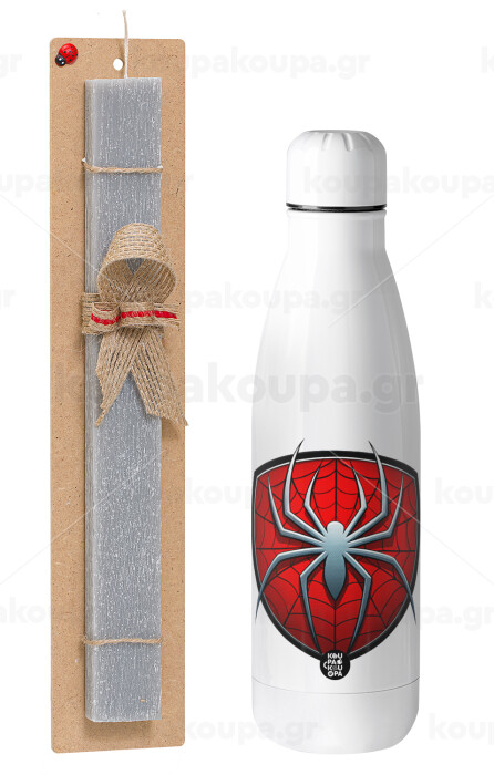 Spider-man, Πασχαλινή Λαμπάδα με μεταλλικό παγούρι θερμός ανοξείδωτο (500ml) & κερί αρωματικό πλακέ (30cm) (ΓΚΡΙ)