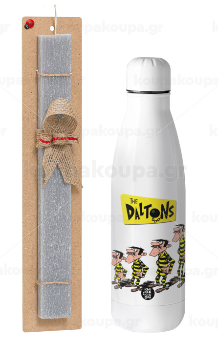 The Daltons, Πασχαλινή Λαμπάδα με μεταλλικό παγούρι θερμός ανοξείδωτο (500ml) & κερί αρωματικό πλακέ (30cm) (ΓΚΡΙ)
