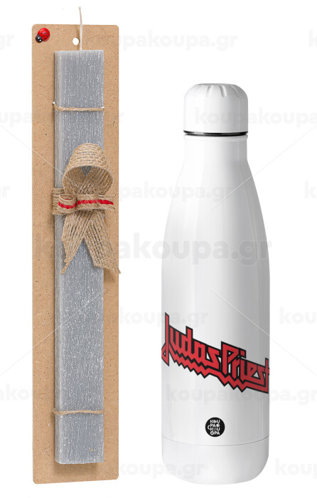 Judas Priest, Πασχαλινή Λαμπάδα με μεταλλικό παγούρι θερμός ανοξείδωτο (500ml) & κερί αρωματικό πλακέ (30cm) (ΓΚΡΙ)