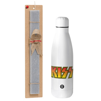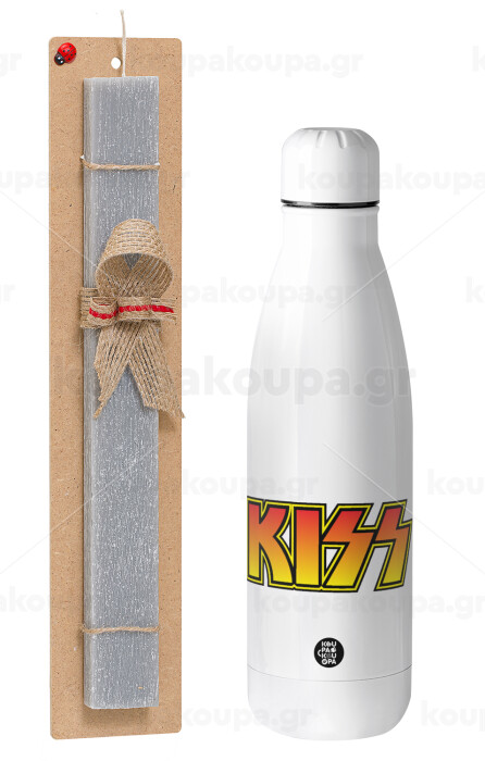 KISS, Πασχαλινή Λαμπάδα με μεταλλικό παγούρι θερμός ανοξείδωτο (500ml) & κερί αρωματικό πλακέ (30cm) (ΓΚΡΙ)
