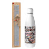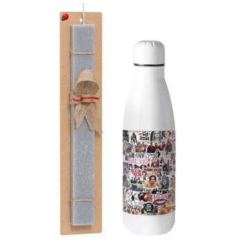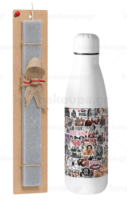 Maneskin stickers, Πασχαλινή Λαμπάδα με μεταλλικό παγούρι θερμός ανοξείδωτο (500ml) & κερί αρωματικό πλακέ (30cm) (ΓΚΡΙ)