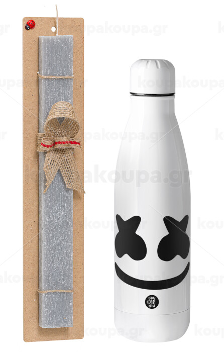 Marshmello, Πασχαλινή Λαμπάδα με μεταλλικό παγούρι θερμός ανοξείδωτο (500ml) & κερί αρωματικό πλακέ (30cm) (ΓΚΡΙ)