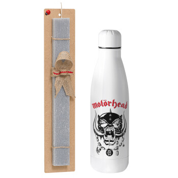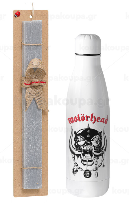 motorhead, Πασχαλινή Λαμπάδα με μεταλλικό παγούρι θερμός ανοξείδωτο (500ml) & κερί αρωματικό πλακέ (30cm) (ΓΚΡΙ)