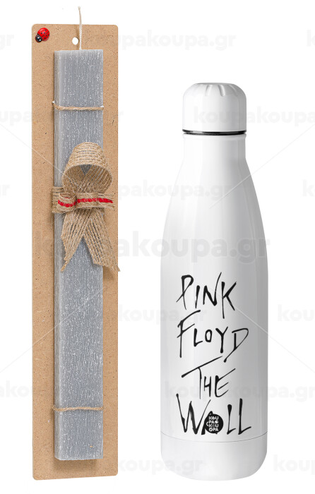 Pink Floyd, The Wall, Πασχαλινή Λαμπάδα με μεταλλικό παγούρι θερμός ανοξείδωτο (500ml) & κερί αρωματικό πλακέ (30cm) (ΓΚΡΙ)
