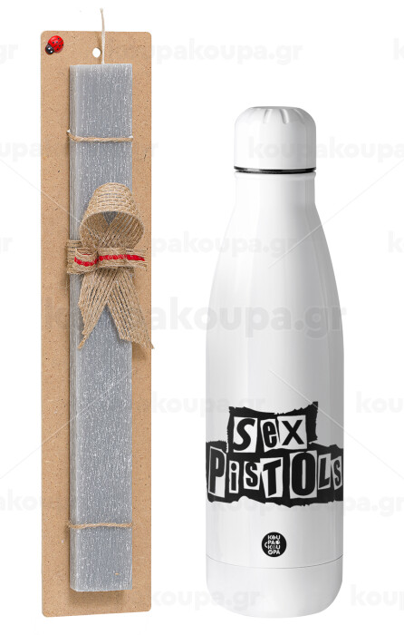 Sex Pistols, Πασχαλινή Λαμπάδα με μεταλλικό παγούρι θερμός ανοξείδωτο (500ml) & κερί αρωματικό πλακέ (30cm) (ΓΚΡΙ)