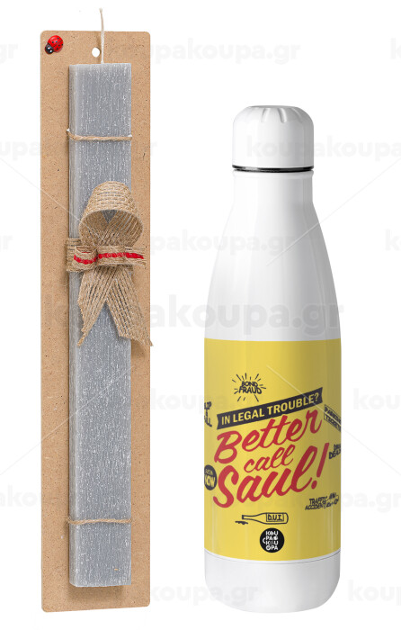 Better Call Saul, Πασχαλινή Λαμπάδα με μεταλλικό παγούρι θερμός ανοξείδωτο (500ml) & κερί αρωματικό πλακέ (30cm) (ΓΚΡΙ)