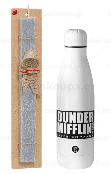 Dunder Mifflin, Inc Paper Company, Πασχαλινή Λαμπάδα με μεταλλικό παγούρι θερμός ανοξείδωτο (500ml) & κερί αρωματικό πλακέ (30cm) (ΓΚΡΙ)