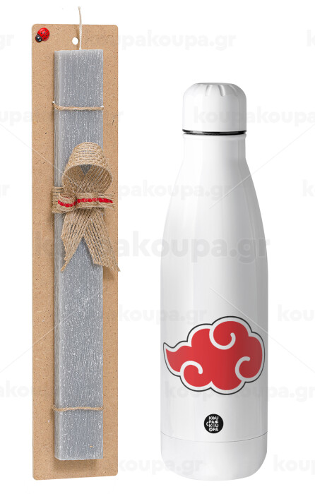 Naruto Akatsuki Cloud, Πασχαλινή Λαμπάδα με μεταλλικό παγούρι θερμός ανοξείδωτο (500ml) & κερί αρωματικό πλακέ (30cm) (ΓΚΡΙ)