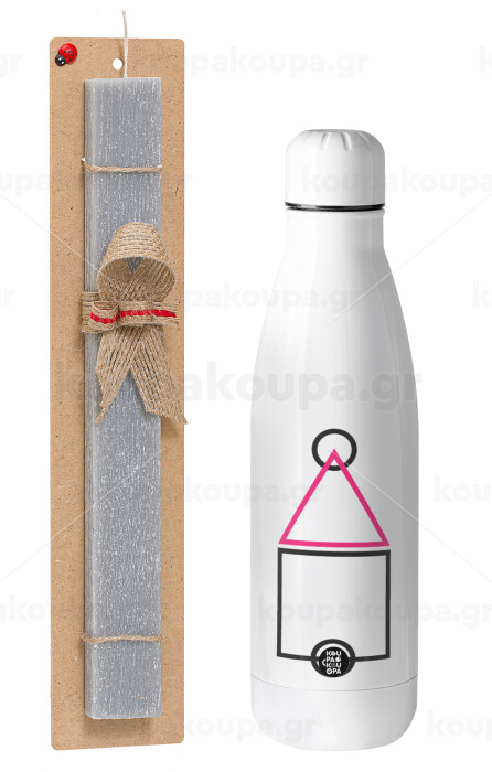 The squid game ojingeo, Πασχαλινή Λαμπάδα με μεταλλικό παγούρι θερμός ανοξείδωτο (500ml) & κερί αρωματικό πλακέ (30cm) (ΓΚΡΙ)