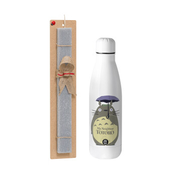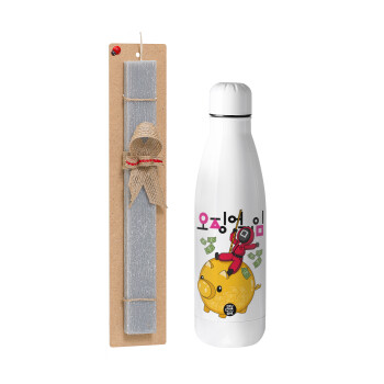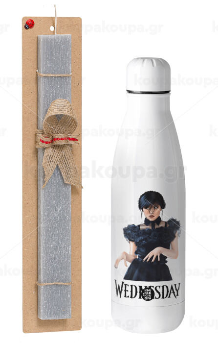 Wednesday Adams, dance with hands, Πασχαλινή Λαμπάδα με μεταλλικό παγούρι θερμός ανοξείδωτο (500ml) & κερί αρωματικό πλακέ (30cm) (ΓΚΡΙ)