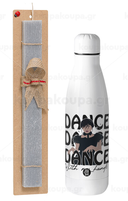 Wednesday dance dance dance, Πασχαλινή Λαμπάδα με μεταλλικό παγούρι θερμός ανοξείδωτο (500ml) & κερί αρωματικό πλακέ (30cm) (ΓΚΡΙ)