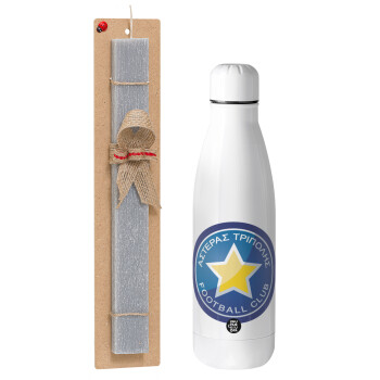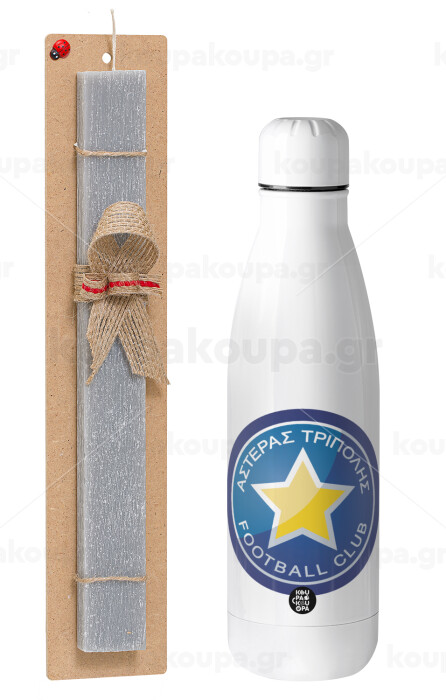 Αστέρας Τρίπολης, Πασχαλινή Λαμπάδα με μεταλλικό παγούρι θερμός ανοξείδωτο (500ml) & κερί αρωματικό πλακέ (30cm) (ΓΚΡΙ)