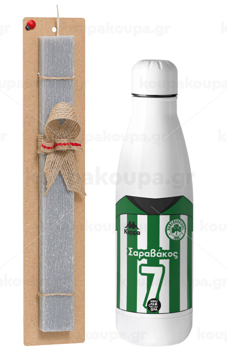Παναθηναϊκός εμφάνιση, Πασχαλινή Λαμπάδα με μεταλλικό παγούρι θερμός ανοξείδωτο (500ml) & κερί αρωματικό πλακέ (30cm) (ΓΚΡΙ)