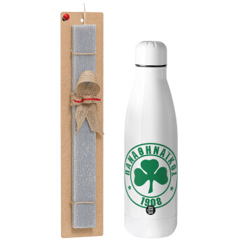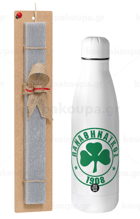 ΠΑΟ Παναθηναϊκός, Πασχαλινή Λαμπάδα με μεταλλικό παγούρι θερμός ανοξείδωτο (500ml) & κερί αρωματικό πλακέ (30cm) (ΓΚΡΙ)