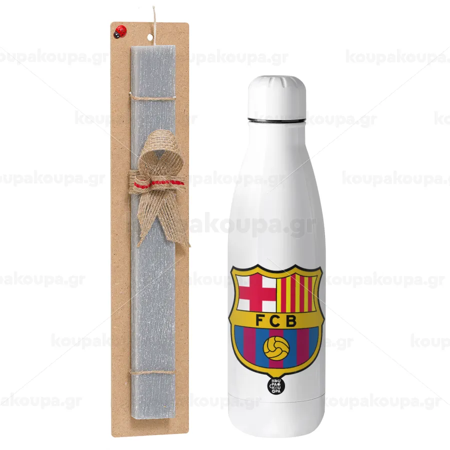 Barcelona FC, Πασχαλινή Λαμπάδα με μεταλλικό παγούρι θερμός ανοξείδωτο (500ml) & κερί αρωματικό πλακέ (30cm) (ΓΚΡΙ)