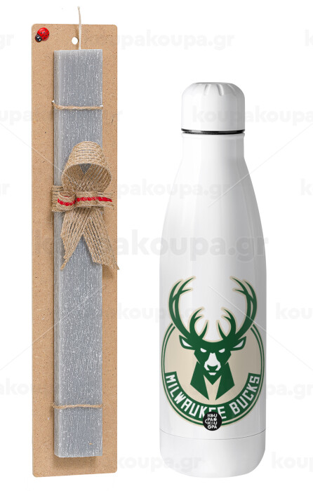 Milwaukee bucks, Πασχαλινή Λαμπάδα με μεταλλικό παγούρι θερμός ανοξείδωτο (500ml) & κερί αρωματικό πλακέ (30cm) (ΓΚΡΙ)