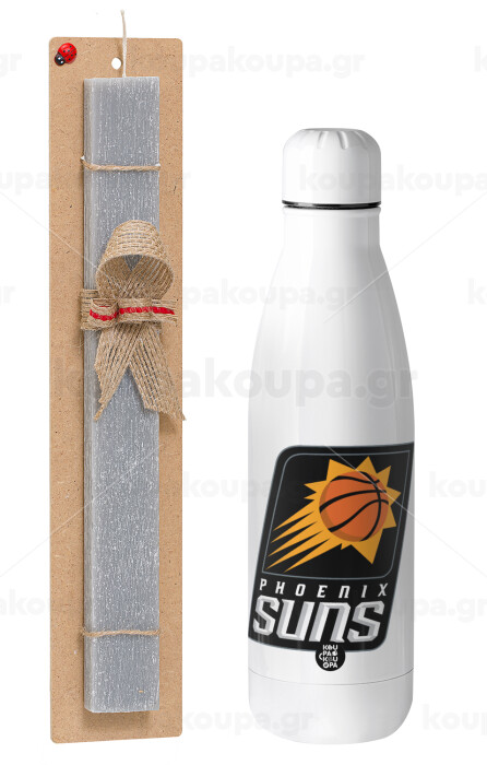 Phoenix Suns, Πασχαλινή Λαμπάδα με μεταλλικό παγούρι θερμός ανοξείδωτο (500ml) & κερί αρωματικό πλακέ (30cm) (ΓΚΡΙ)