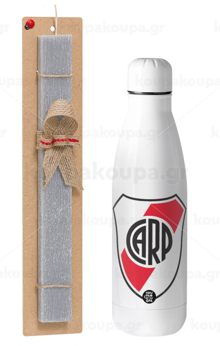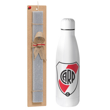 River Plate, Πασχαλινή Λαμπάδα με μεταλλικό παγούρι θερμός ανοξείδωτο (500ml) & κερί αρωματικό πλακέ (30cm) (ΓΚΡΙ)