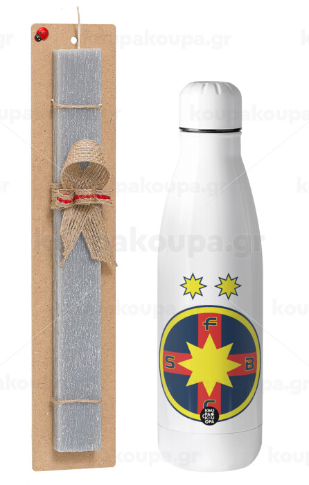 FC Steaua Bucuresti (FCSB), Πασχαλινή Λαμπάδα με μεταλλικό παγούρι θερμός ανοξείδωτο (500ml) & κερί αρωματικό πλακέ (30cm) (ΓΚΡΙ)