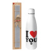 I LOVE YOU, Πασχαλινή Λαμπάδα με μεταλλικό παγούρι θερμός ανοξείδωτο (500ml) & κερί αρωματικό πλακέ (30cm) (ΓΚΡΙ)