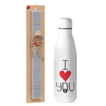 I Love You small dots, Πασχαλινή Λαμπάδα με μεταλλικό παγούρι θερμός ανοξείδωτο (500ml) & κερί αρωματικό πλακέ (30cm) (ΓΚΡΙ)
