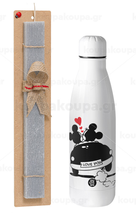 Love Car, Πασχαλινή Λαμπάδα με μεταλλικό παγούρι θερμός ανοξείδωτο (500ml) & κερί αρωματικό πλακέ (30cm) (ΓΚΡΙ)