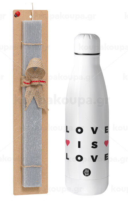 Love is Love, Πασχαλινή Λαμπάδα με μεταλλικό παγούρι θερμός ανοξείδωτο (500ml) & κερί αρωματικό πλακέ (30cm) (ΓΚΡΙ)