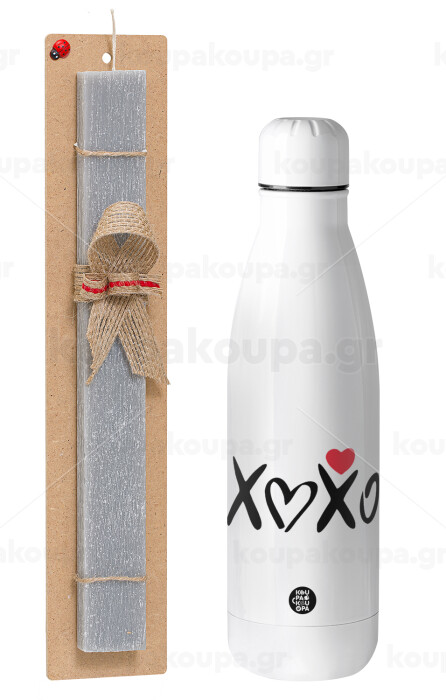 xoxo, Πασχαλινή Λαμπάδα με μεταλλικό παγούρι θερμός ανοξείδωτο (500ml) & κερί αρωματικό πλακέ (30cm) (ΓΚΡΙ)