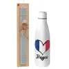 France flag, Πασχαλινή Λαμπάδα με μεταλλικό παγούρι θερμός ανοξείδωτο (500ml) & κερί αρωματικό πλακέ (30cm) (ΓΚΡΙ)