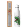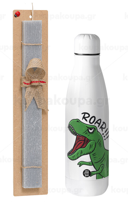 Dyno roar!!!, Πασχαλινή Λαμπάδα με μεταλλικό παγούρι θερμός ανοξείδωτο (500ml) & κερί αρωματικό πλακέ (30cm) (ΓΚΡΙ)