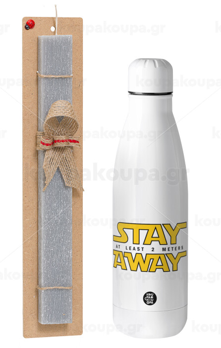 Stay Away, Πασχαλινή Λαμπάδα με μεταλλικό παγούρι θερμός ανοξείδωτο (500ml) & κερί αρωματικό πλακέ (30cm) (ΓΚΡΙ)