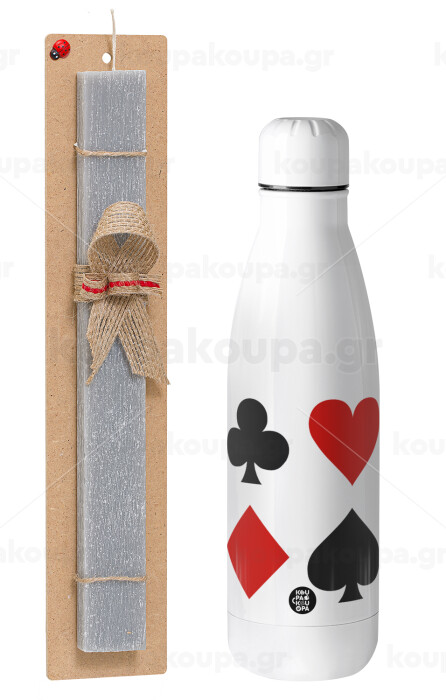 Τραπουλόχαρτα, Πασχαλινή Λαμπάδα με μεταλλικό παγούρι θερμός ανοξείδωτο (500ml) & κερί αρωματικό πλακέ (30cm) (ΓΚΡΙ)