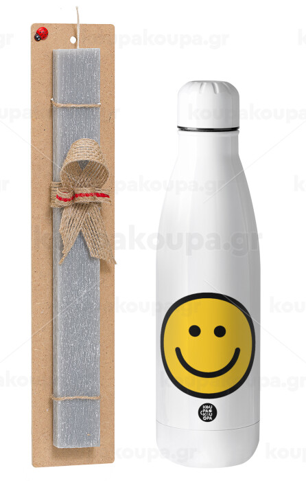 Smile classic, Πασχαλινή Λαμπάδα με μεταλλικό παγούρι θερμός ανοξείδωτο (500ml) & κερί αρωματικό πλακέ (30cm) (ΓΚΡΙ)