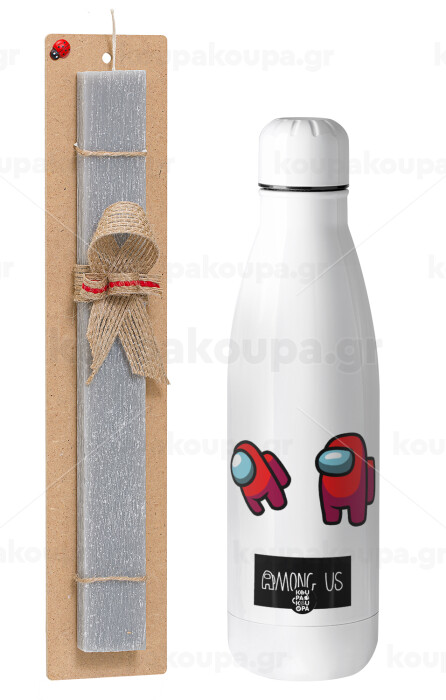 Among US, Πασχαλινή Λαμπάδα με μεταλλικό παγούρι θερμός ανοξείδωτο (500ml) & κερί αρωματικό πλακέ (30cm) (ΓΚΡΙ)